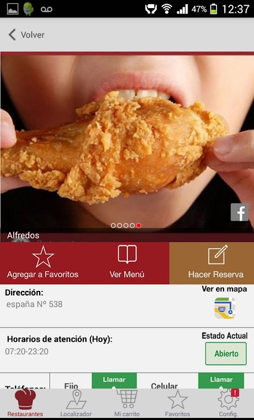 Furthermore, as an additional service to Restaurants Bolivia App, you can place orders at home restaurants this service available to you and pay in the comfort of your home.