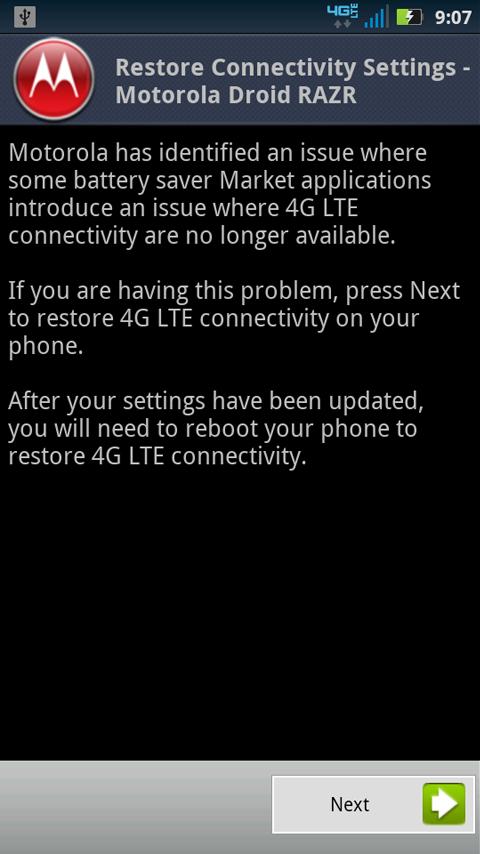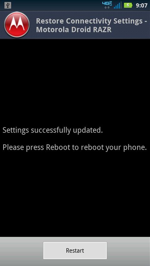 Are you experiencing 4G LTE data connectivity issues on your Motorola Droid RAZR phone? This app may help. If you have experienced these issues after running some battery saver market apps, you can restore your phone’s data connectivity settings using this app.