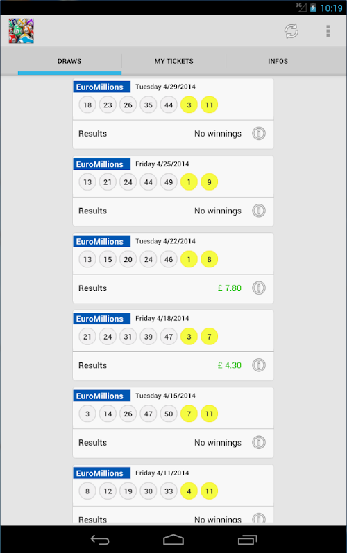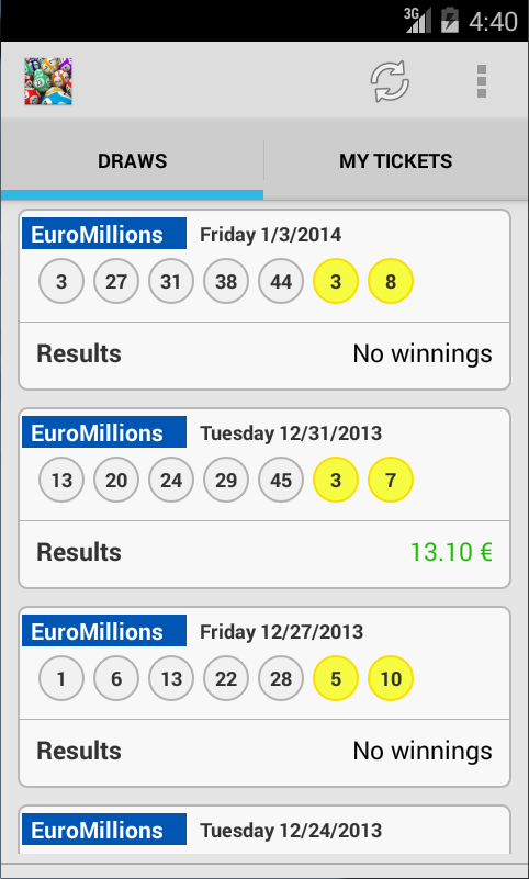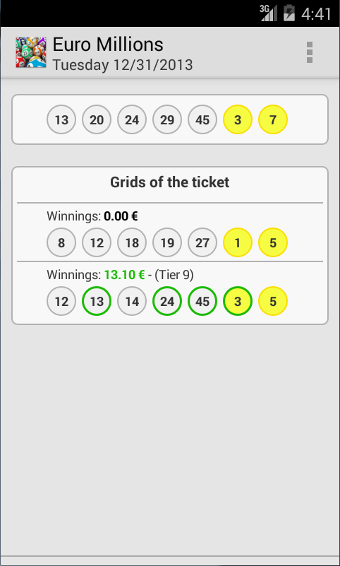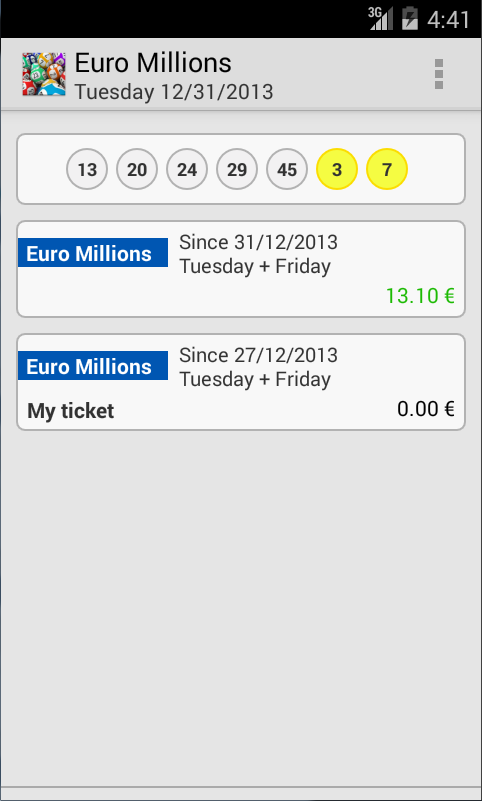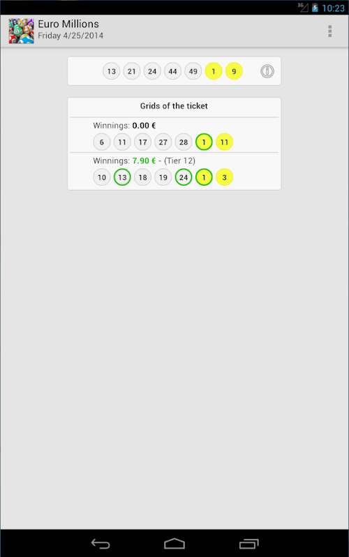Check the results of lotteries (Euromillions, Loto, ...)! Store your numbers and instantly know if you have matched any prizes.