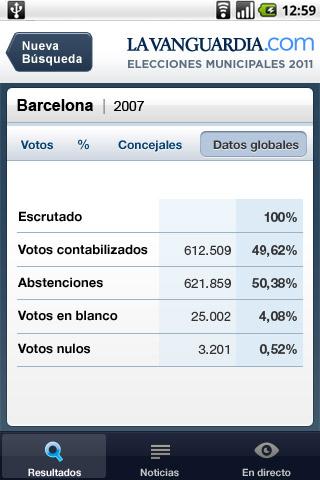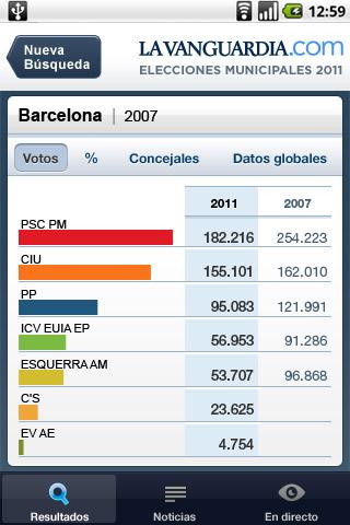 LaVanguardia.com ofrece esta aplicación para Android para seguir en tiempo real los resultados de las elecciones municipales españolas del 22M. Consulta además todos los datos de estas elecciones desde 1987.