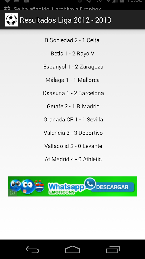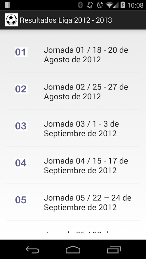 Aplicación con los resultados de la liga de fútbol profesional de España de la temporada 2012-2013.Applying the results of the professional football league in Spain of the 2012-2013 season.