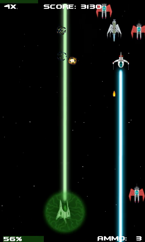 Added a points multiplier modes! Each mode ( 1x, 2x, 3x ) comes with many variations to the gameplay including: increased music tempo, larger shield, faster bullets, and on 4x mode you have chain lightening!