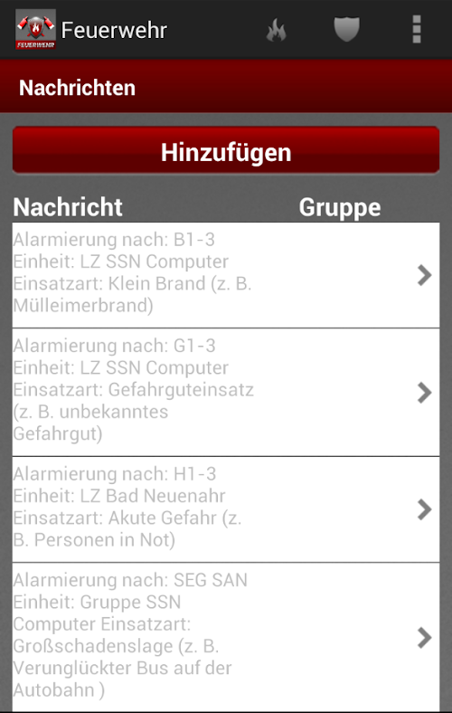 Diese App ermöglicht es, Einsatzkräfte gruppenweise oder einzeln zu alarmieren. Die Einsatzkräfte können wahlweise per SMS oder E-Mail alarmiert werden – natürlich für jeden Nutzer individuell einstellbar. Sie werden nie wieder einen Alarm verpassen. Es geht ganz einfach: Sie werden alarmiert und klicken auf die App. Binnen Sekunden alarmieren oder informieren Sie weitere Einsatzkräfte mit einem von Ihnen voreingestellten und individuell festgelegten Text. Alle Einsatzstichworte/-meldungen können manuell angelegt werden. Die App übernimmt hierbei für Sie alle für den Einsatz relevanten Details.