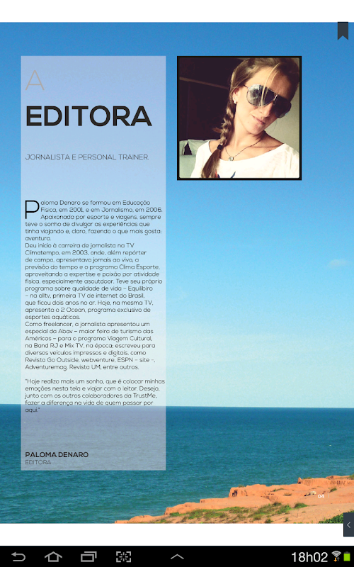 Nosso diferencial está em apresentar ao leitor informações apuradas presencialmente seja por nossa editora, seja por nossos colaboradores. Você perceberá também que nossas viagens e dicas visam a agradar mais a um público que acredita, assim como nós, que a verdadeira viagem só acontece quando se vive o lugar, ou seja, se experimenta tudo o que se pode. Não se trata apenas de “ir”. Para a TrustMe, viajar é coisa séria, muito séria mesmo, porque acreditamos que a vida só faz sentido quando se explora ao ao máximo para, assim, espalhar o que aprendemos, sempre dispostos a adquirir novos aprendizados.