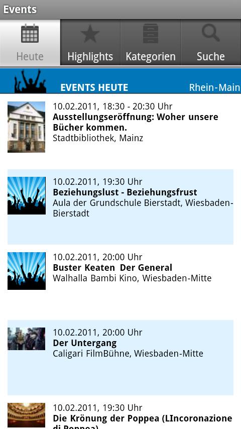 Veranstaltungskalender Rhein-Main mit Events der Gebiete Mainz, Wiesbaden, Rheingau-Taunus und Rheinhessen.