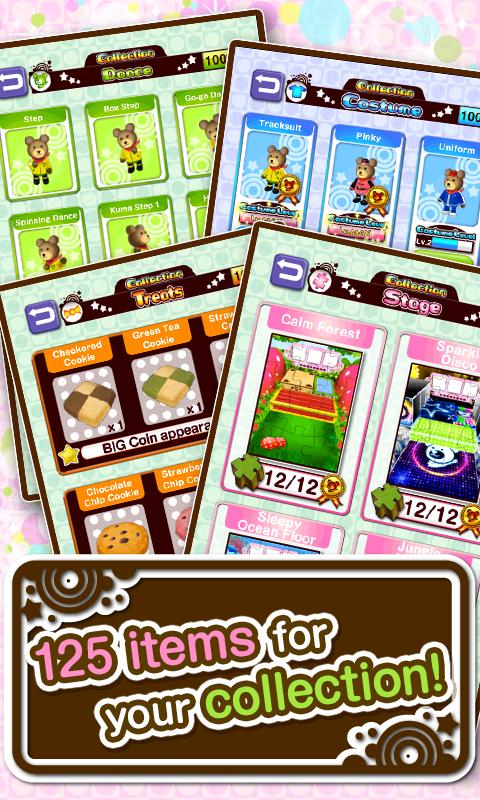 - Collect lots of coins to level up and teach Kuma new dances!