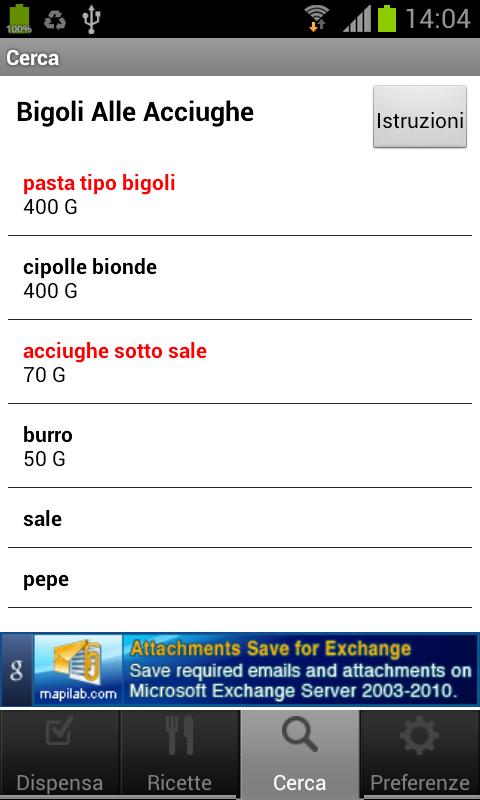 Clicca qui e scorri la lista delle ricette trovate che sono "compatibili" con gli ingredienti presenti nella tua dispensa.