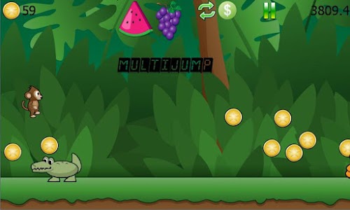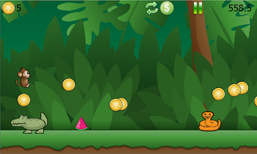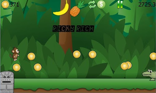 Ricky Monkey run throw jungle. He should avoid snakes, crocodiles and other obstacles on his way to win in this runner-game. But not everything is dangerous in jungle. Ricky Monkey loves fruits and you can help him to have it in this runner-game. Just collect any pair of fruits and Ricky will throw it to break obstacle. You can even collect not equals fruits for other bonuses. For example, it is fly on cloud to avoid any dangerous situations or you can find a treasure. Coins will help you to open new combos and upgrade them.