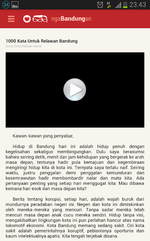 Let's get together to fix Bandung, because "Good Government" is not enough to build a city need "Good Citizen" also to make Bandung City Champion.