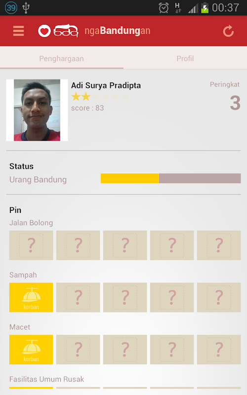 Pada fitur ini user kita melihat jumlah total permasalahan-permasalahan kota Bandung yang sudah di laporkan.