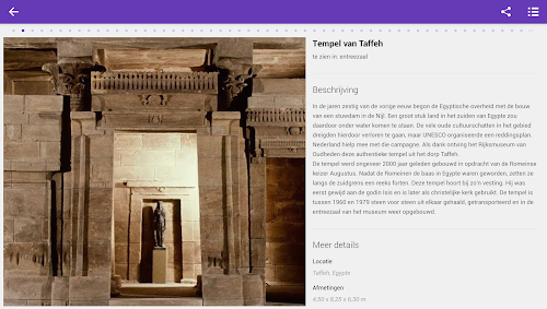 Deze app is gemaakt met behulp van Google Open Gallery: http://www.google.com/opengalleryThe National Museum of Antiquities, the National Centre for Archaeology, which can enjoy old and young of the civilizations of ancient Egypt and the Near East, the Greek and Roman world and early Netherlands.