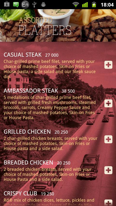 Roadster diner mobile app features an updated user interface design, creating an intuitive user experience and a striking visual appeal that will draw users in at first glance. The app allows an easy access to Roadster diner's delivery menu, the Rd newsletter, and the contact information of all branches. Enhanced social media sharing options were added, plus an engaging Augmented Reality feature.