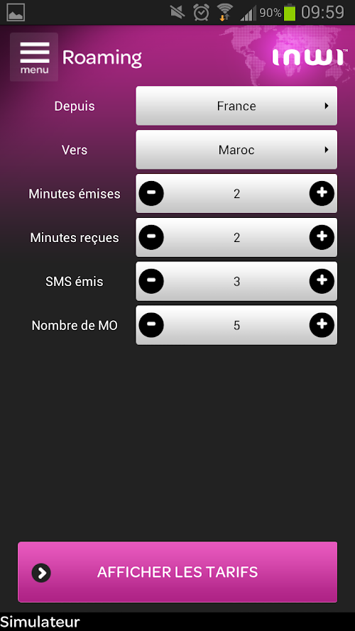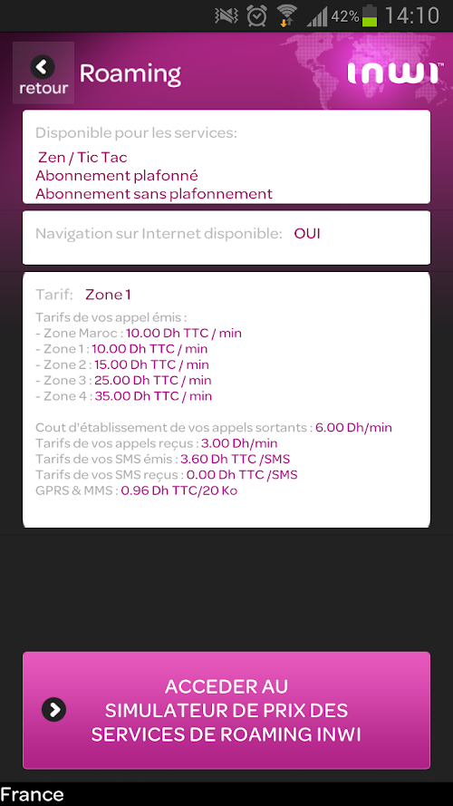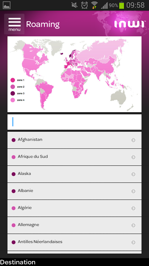 Communiquez partout dans le monde avec inwi grâce au roaming et restez joignable 24h/24 - 7j/7 ! Cette application vous permettra d'avoir tous les renseignements nécessaires à l'utilisation du service roaming inwi.Call worldwide with inwi through roaming and stay reachable 24h/24 - 7/7! This application will give you all the information needed to use the service roaming inwi.