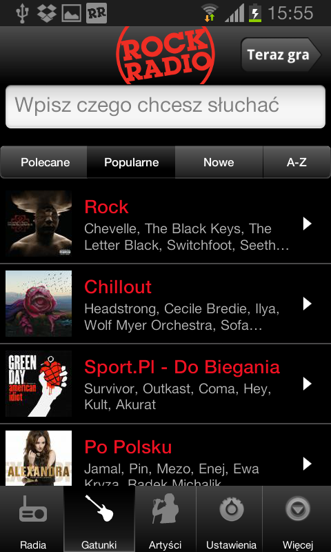 On the artists there are more than five hundred stations playing only the greatest hits of the most popular artists and bands from the Polish and the world. Species are more than two hundred best wines stations such as Rock, Alternative Rock, Dubstep, etc., and special stations, for example, with the best music at the carnival, with songs for running and doing exercises, and even stations with hits for children.