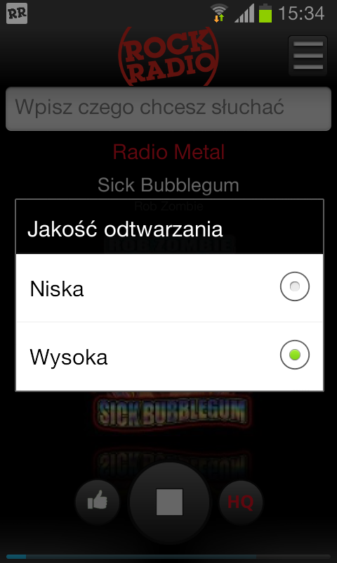 To turn on the Radio Roxy, just run the application. While listening, you can always check the title and artist of the currently played song, see the album cover from which the track and see what will be going on for a while.