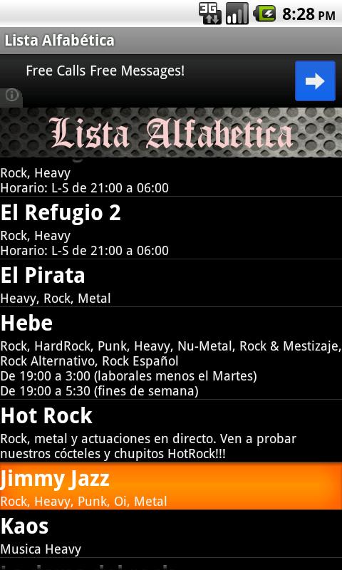 This application contains all Rock & Roll pubs in Madrid (Heavy, Hard Rock, Metal, Punk, etc.). With interesting options: