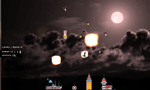 Your mission is to save the world by using limited rocket supplies and defense strategy. Beware of the atom bombs which will destroy everything too. You have four important buildings in each level and you need to protect at least one of them until the end of each level. There are waves of attacks in each level with increasing tempo.
