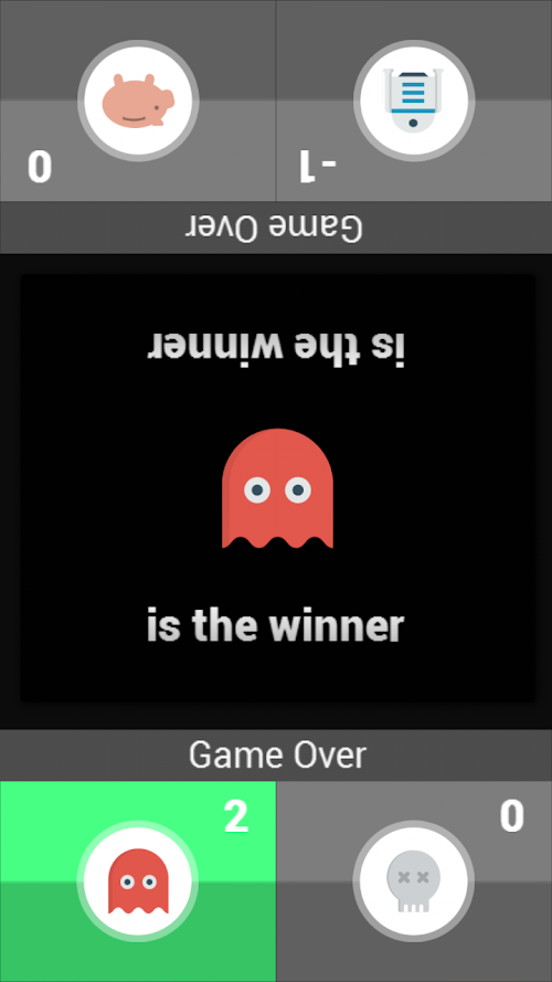 You can play with two, three or four players at the same time on one device. Sitting next to each other makes this game even more exiting. Play with your family at home or with your friends in a bar.