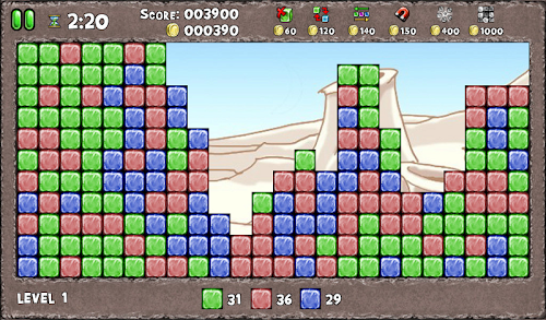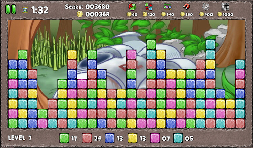 To get the level completion bonus, besides completing the required color targets, you should remove every remaining group before the time is over.