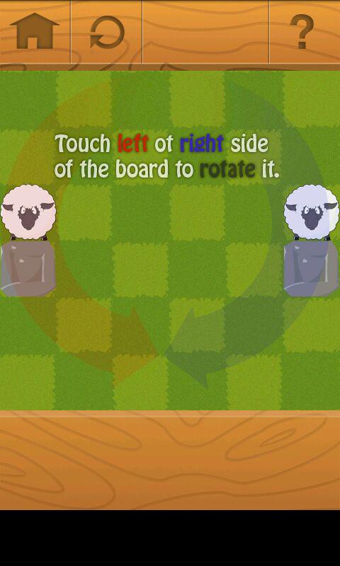 The sheeps have run away on the field and your target is to bring them together. You have to rotate game board so the sheeps join to a pack. It's not so easy how it looks at the first glance!