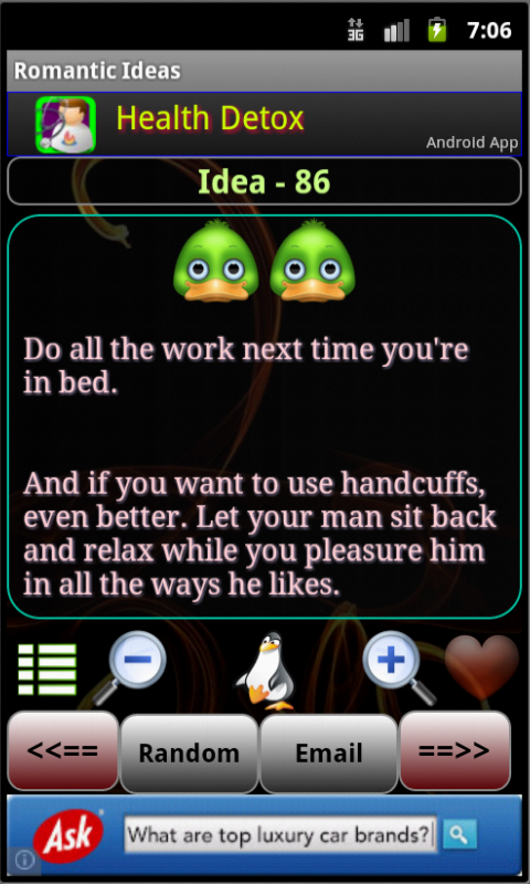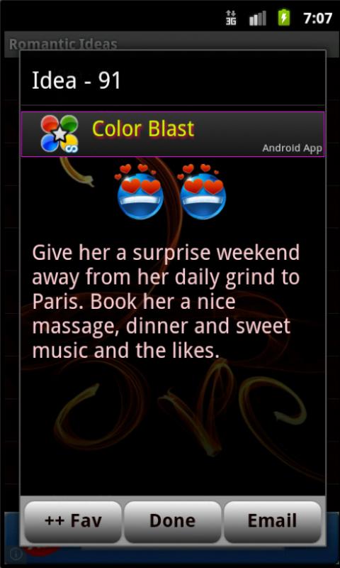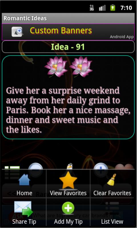 If you want to surprise your wife or a lover with a romantic experience, this is the app for you. This app could bring back that missing spark in your relationship. This app could even bring broken relationships back to life. Give this a try and we are sure that you will not regret it. No ads in pro version.