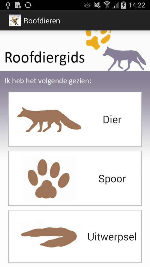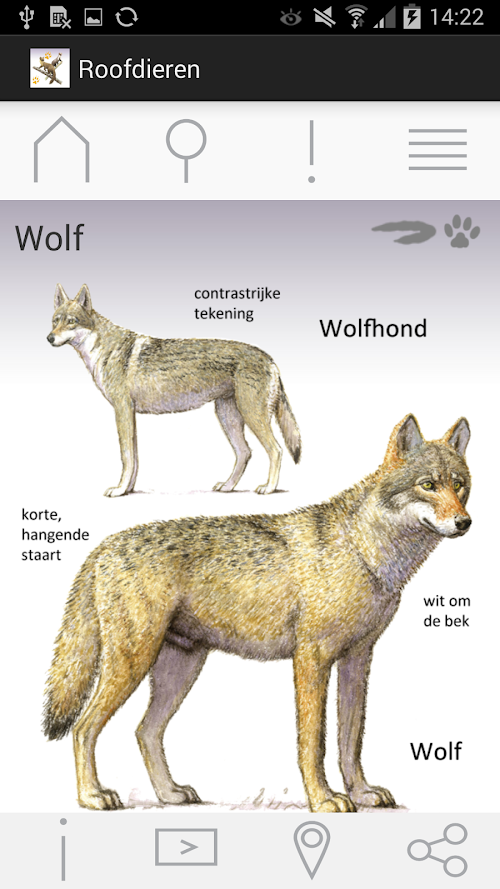 The handy app helps in the recognition of all Western European predators. In addition to the animals themselves are also look-a-likes, his footprints and droppings shown. Drawings are illustrated with a short text. In addition, the app includes tips for detecting predators.