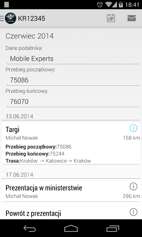 Aplikacja „Roomcajs – ewidencja przebiegu” pozwala na prowadzenie ewidencji przebiegu pojazdów zgodnie z wymaganiami określonymi ustawą o VAT oraz przepisami określonymi przez urzędy skarbowe, co oznacza, że umożliwia użytkownikowi podanie: