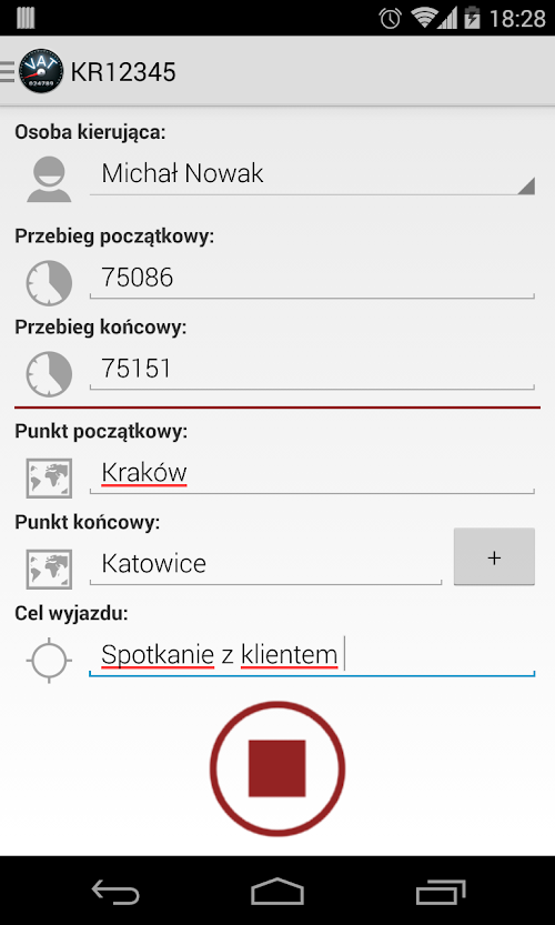 • w jakim celu został wykonany przejazd (możliwość wybrania z listy dostępnej w aplikacji z wcześniej wprowadzonych w aplikacji celów przejazdu).