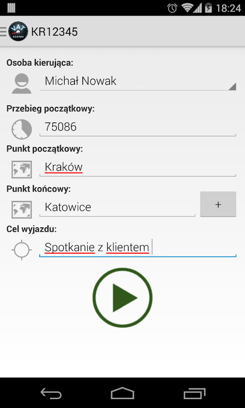 krok 2 - Na ekranie nowego przejazdu wprowadź dane niezbędne do rozpoczęcia podróży,