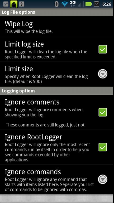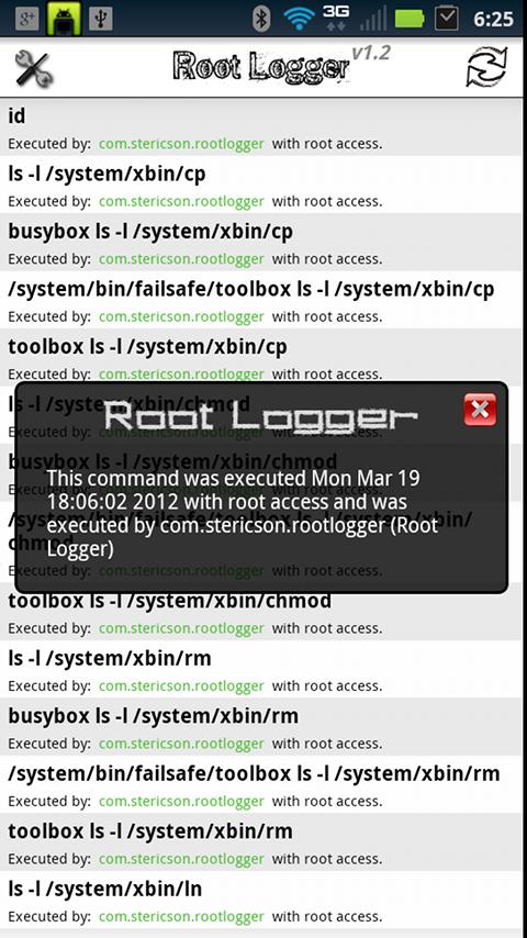 Root Logger is the only application that can log all shell commands that are sent to your phone, including those from other rooted applications.