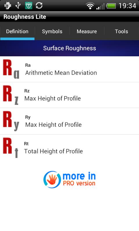 Engineering tool Roughness Lite application provide complex information regarding surface roughness aspects with definition, parameters, symbols description, measurements list and additional tools providing useful calculators. Helps you choose necessary roughness and method how obtain surface finish.