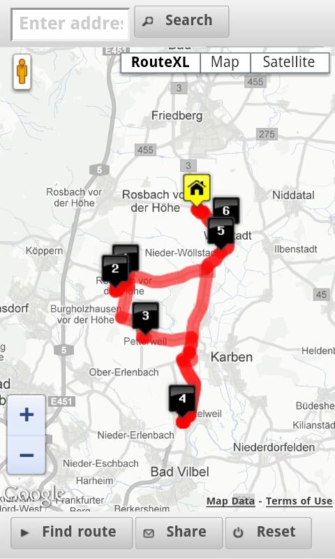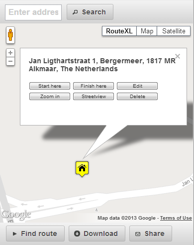 Addresses can be added with auto-complete search or by clicking the exact location on the map. Streetview for each point where available. Routes can be shared via social media, like Facebook or Twitter. The fast and easy multiple destination route planner optimizes routes for couriers, distributors, transporters and many more, up to 20 locations per roundtrip. With an account, you can upgrade and add up to 150 locations per route.
