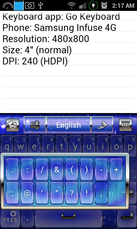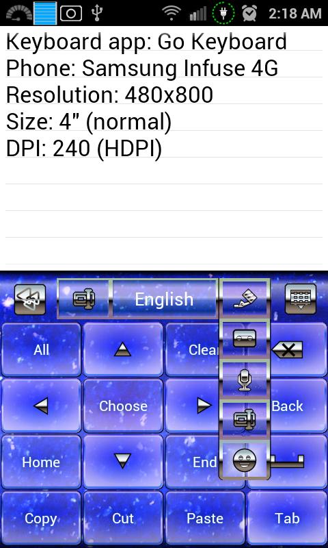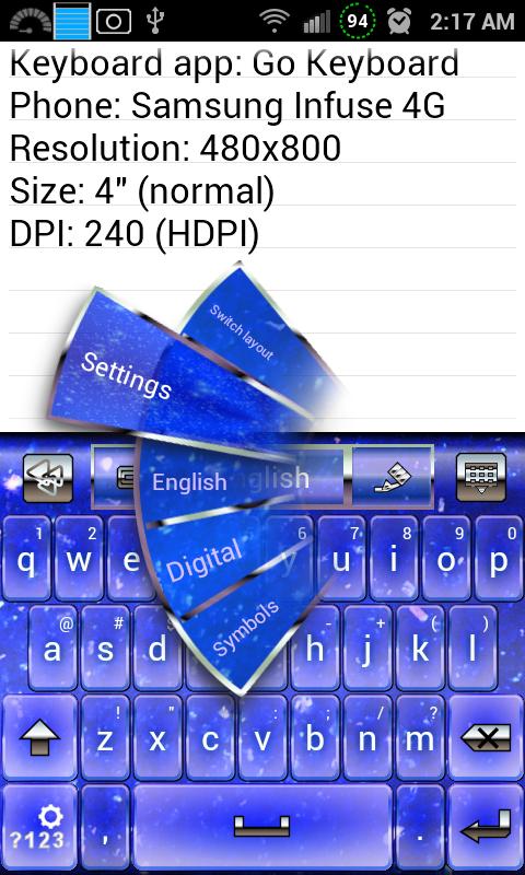 For the best experience using this skin, I recommend using Go Keyboard, or Ultra Keyboard.
