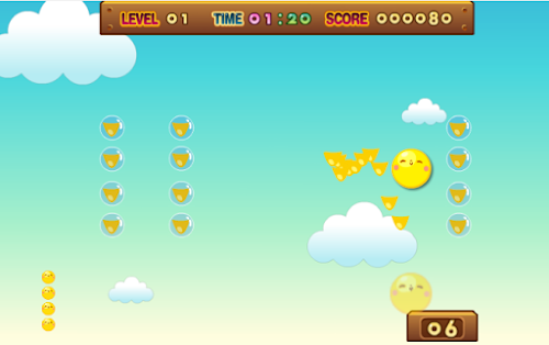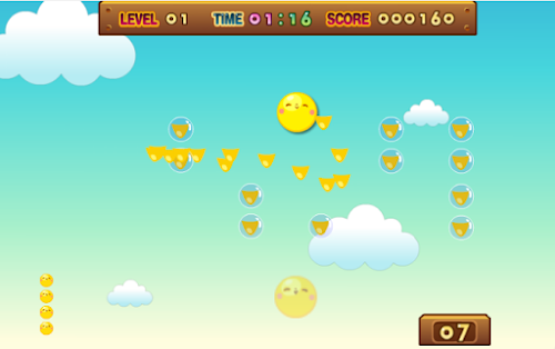The rubber sun ball is moving up and down, control its movements as well as collect the fixed balls.