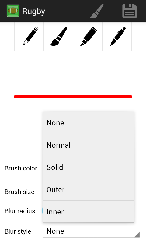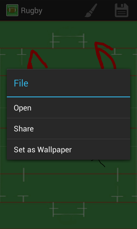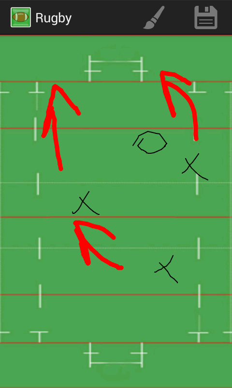 Also includes the ability to save the Rugby tactics image on location "sdcard/Rugby_Coach_Board" and load the Rugby tactics image to gallery.