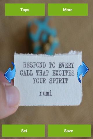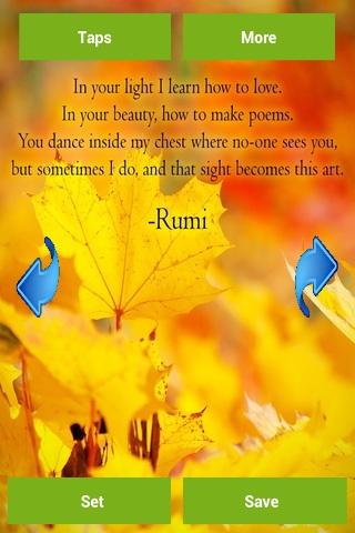 Enjoy the beauty of Rumi words on your home screen. This app contains selected images with quotes by 13th century Persian poet and Sufi mystic - Mevlana Jelalu'ddin Rumi.