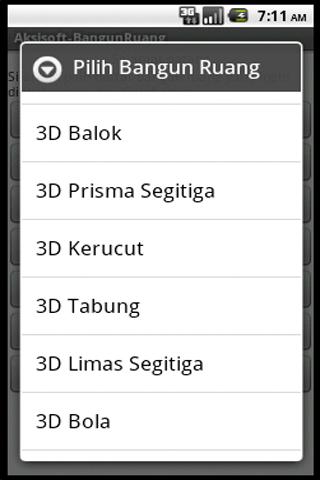 Daftar Bangun Ruang yang ada dalam Aplikasi Umum digunakan :