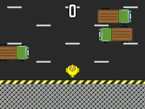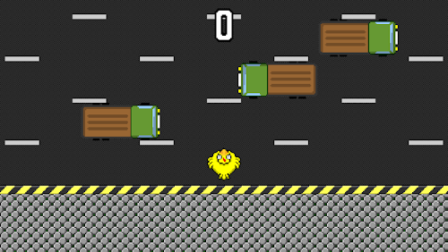 Tap on your device to make the chicken move forward. Avoid the trucks and keep moving forward.