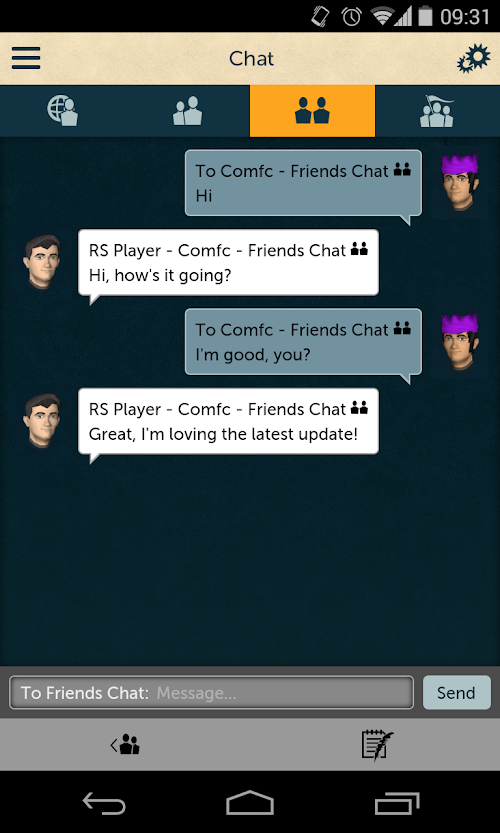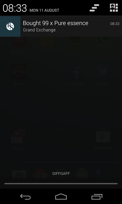 The Official RuneScape Companion app for Android is the only way for you to chat to fellow players, make trades on the Grand Exchange and keep up to date with your Distractions & Diversions while on-the go! You can also receive Push Notifications on completion of Grand Exchange transactions. It's a great way for you to stay connected to RuneScape while away from your computer.