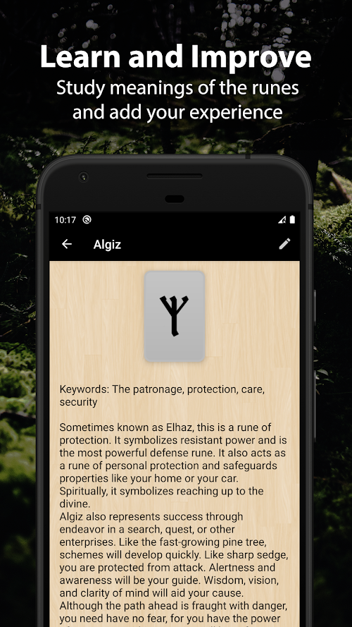 Divinatory Rune Meanings: Break chains of generic meanings when learning runes. Runes descriptions inside the app can be edited and improved with your experience and knowledge.