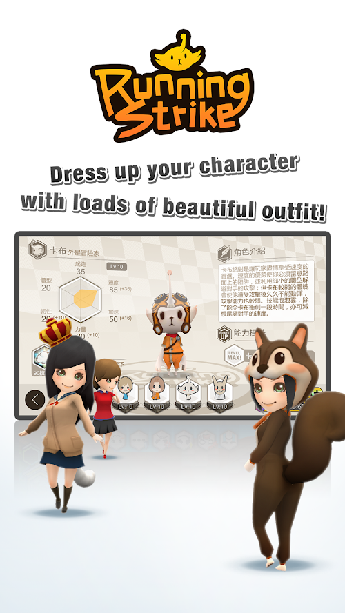 Running Strike is a real-time multi-player strategic game. You are running on randomly generated tracks to battle with other players, instantly. As a player, your mission is to guide our characters to overcome all obstacles along the track and win the game. With the help of items, skills and talent, you can choose the best strategy for each match. Players, join the world of Running Strike, lead our characters to success and be the Master of Running!