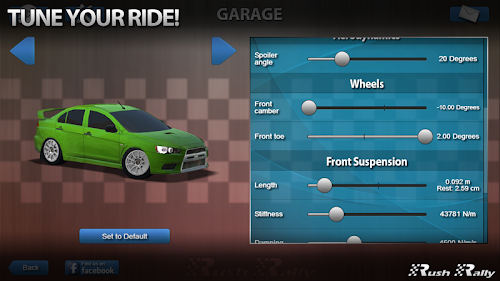Connect to Facebook, compete with your friends and race against their ghost cars at any time you like. 5 game modes including turbo and roadworks make competition with friends even more fun! Become Colin Mcrae or Sebastian Loeb!