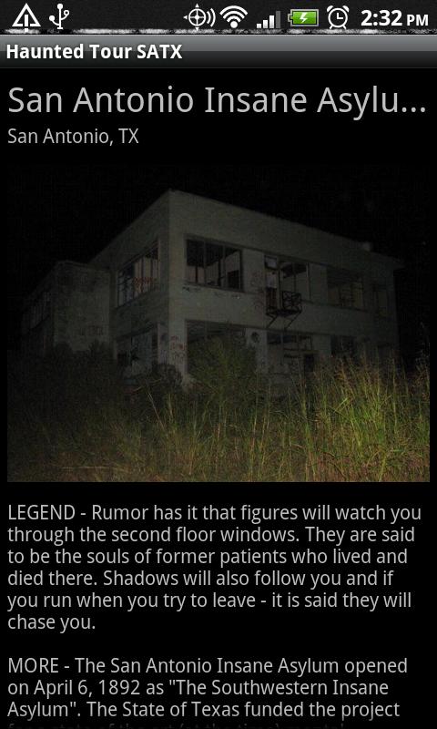 This version of the Haunted Tour app is powered by the Ghost Guide database. This mean you are not limited to just the haunted tour locations, we are including high quality images, maps, history , and users comments for over 1000 haunted locations around the world.