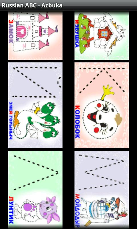 Russian ABC flashcard for kids. This is fun and colorful application to keep your children engaged, learn Russian alphabet and build motor skills. Join the dots in the color of your choice to draw different letters. This application has collection of pictures with all Russian letters to draw and additional illustrations and puzzles with characters from Russian fairy tales. Draws as you move the finger.