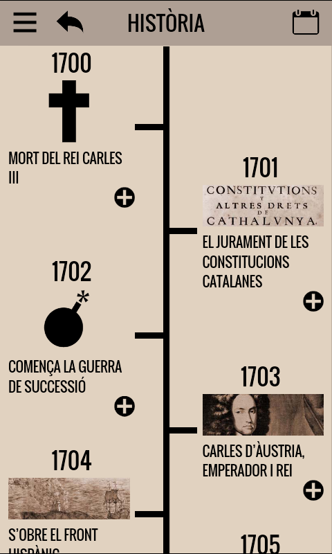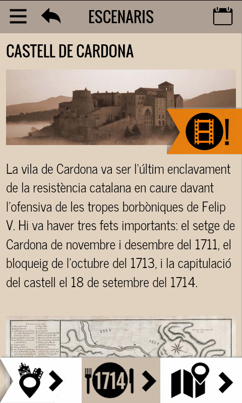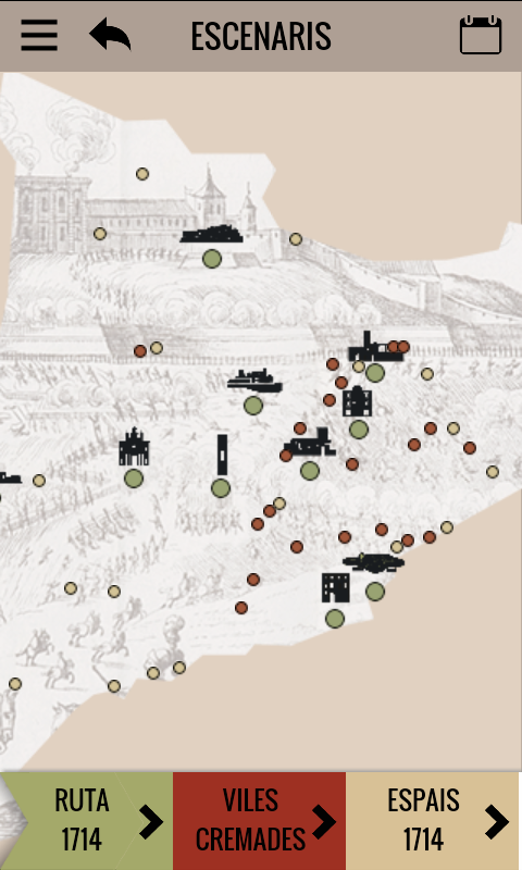 This app is published as part of the commemoration of the tercentenary of the outcome of the War of the Spanish Succession (1714-2014) and the creation of the Route 1714, an initiative of the Government of Catalonia to highlight the scenes, spaces and villages highlights that make the witness of that conflict. The app will allow you to carry in your pocket all the information needed to go visit the 55 stocks that make up the route in 1714.