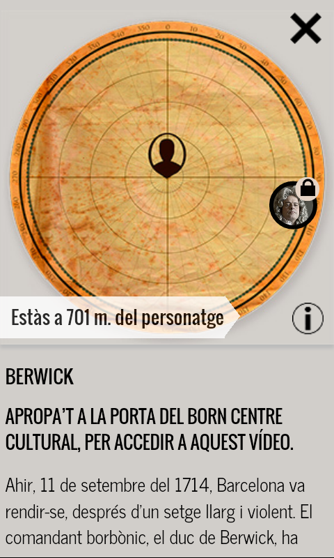 Si visites els escenaris més rellevants que formen la ruta, l’app et premiarà amb el desbloqueig dels capítols premium de Veus 1714. Busca’ls amb el radar de l’app; t’hi esperen un sèrie de vídeos que et posaran cara a cara amb personatges del segle XVIII. Escolta el que t’han de dir i comparteix-ne les impressions a les xarxes socials. Les #veus1714 no et deixaran indiferent.
