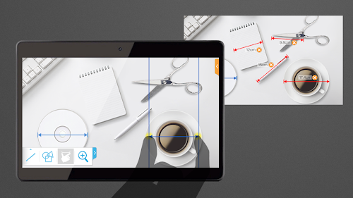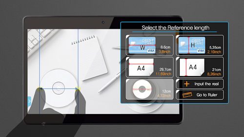 * in "Measure real length MODE", need reference object(like credit card, a4 paper, CD ...)