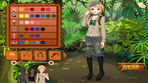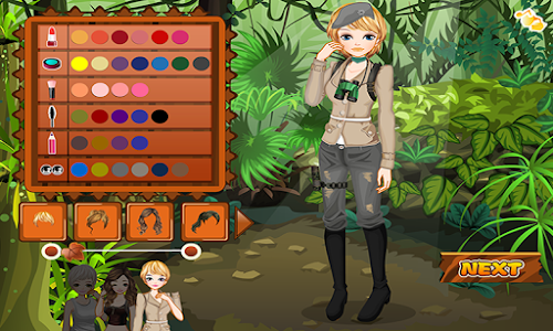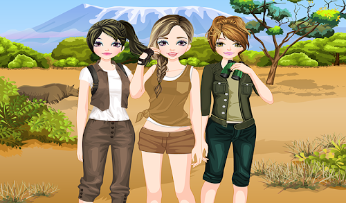 Play this dress-up game in the jungle with three girls. Linda, Lola and Lydia are going into the jungle to look for lions, tigers and elephants. But before they can leave, they need to have the right clothes. The safari look is what they are looking for. Find all three girls the right make-up and jewels. Then look for clothes and shoes. Change as often as you want. Come on, hurry up, I can hear the roar of the tigers from here. It is time to leave for this safari.