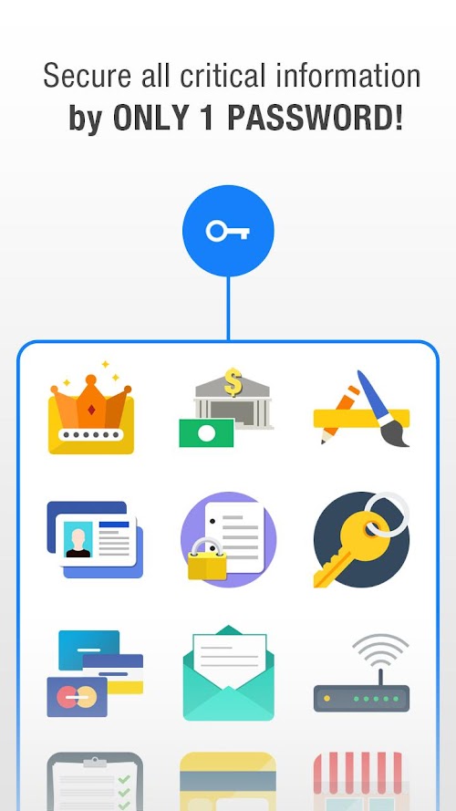 Save ALL PASSWORDS: Email, Notes, Bank Account, Credit Card, ID, Passport, Social Security Number, Insurance Card, Facebook, Twitter, Google, Amazon and many, many more!