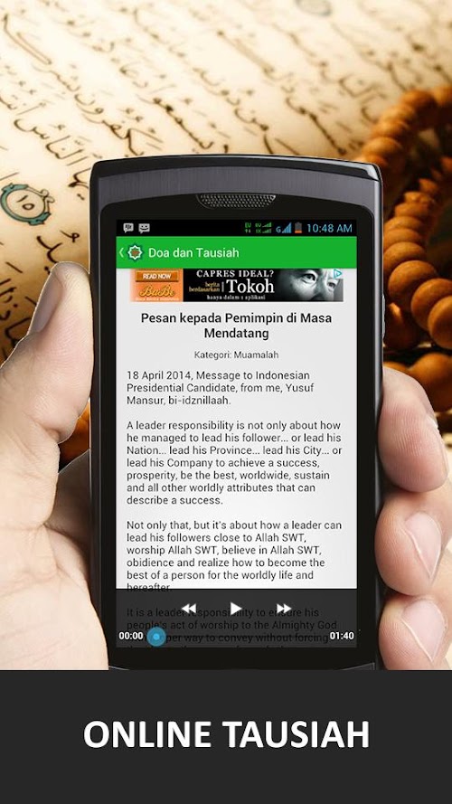 - Tausiah: Teaching and preaching by Ust. Yusuf Mansur in short audio file that will make your heart calm and remember Allah SWT